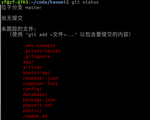 如果只是用Git仓库的工作树创建了文件,那么文件并不会被记入Git仓库的版本管理对象中。因此我们用git status命令查看文件时,他会显示在Untracked files里。