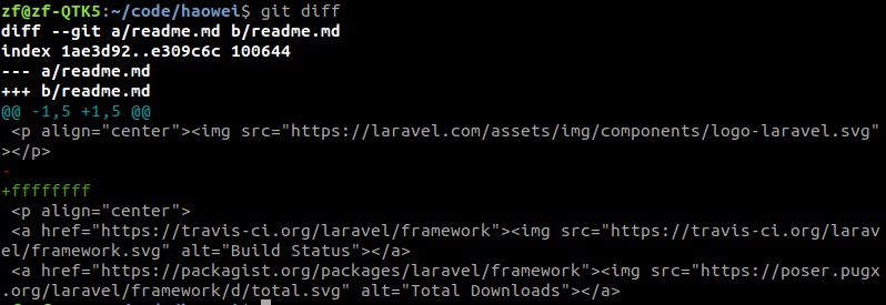 git diff命令可以查看工作树、暂存区、最新提交之间的差别。