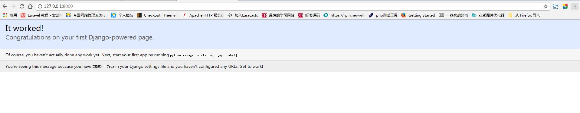 2.进入创建的项目中运行然后访问127.0.0.1:8000