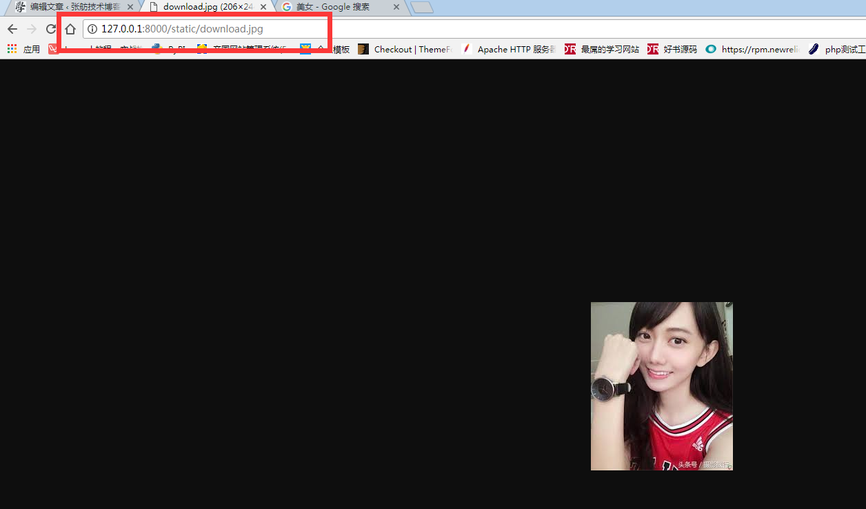 然后访问地址http://127.0.0.1:8000/static/download.jpg你会访问到静态文件