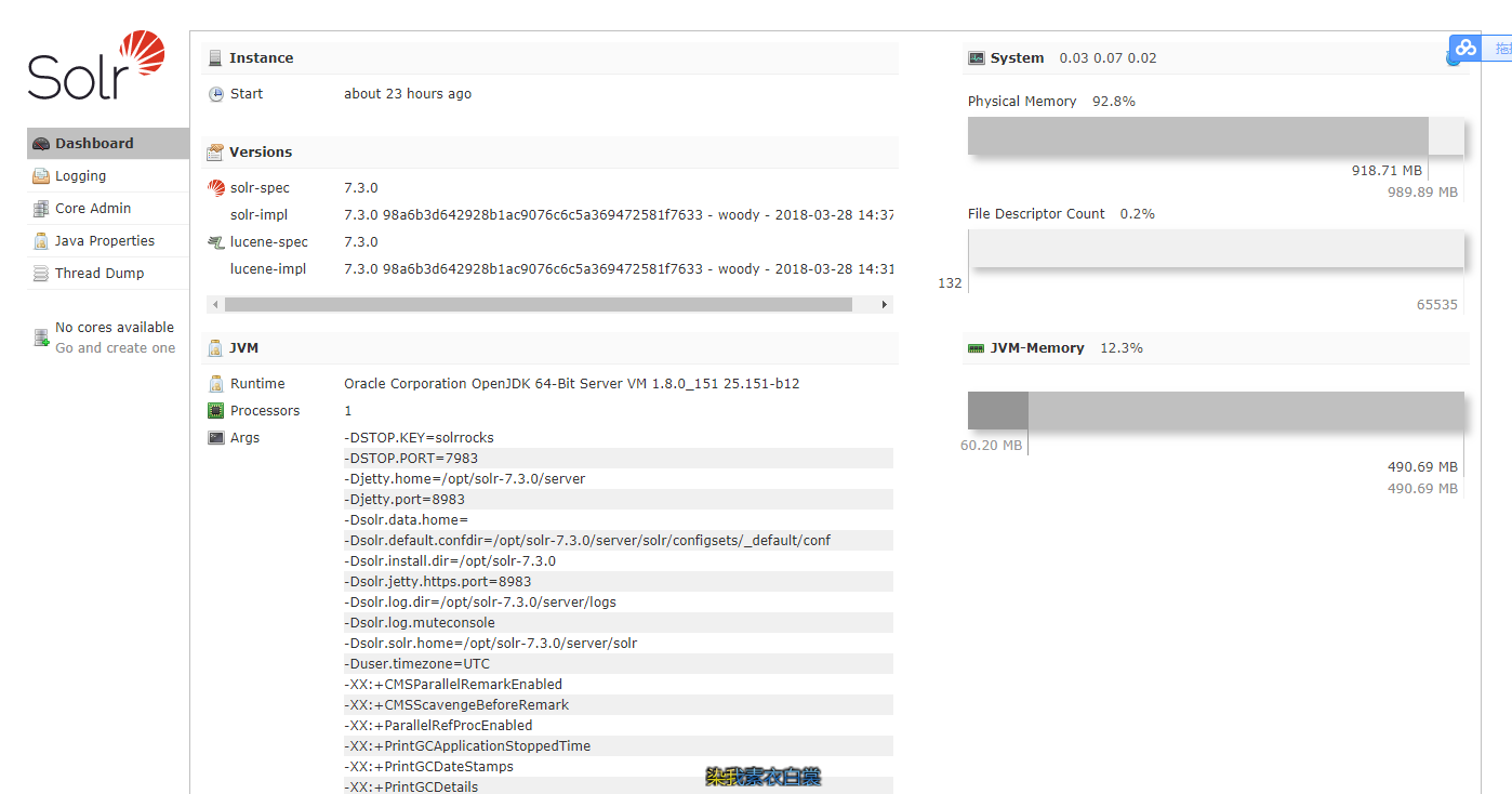 这将搜索在您的计算机上运行的 Solr 实例,然后收集有关它们的基本信息,如版本和内存使用情况。