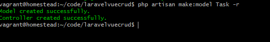 php artisan make:model Task -r |