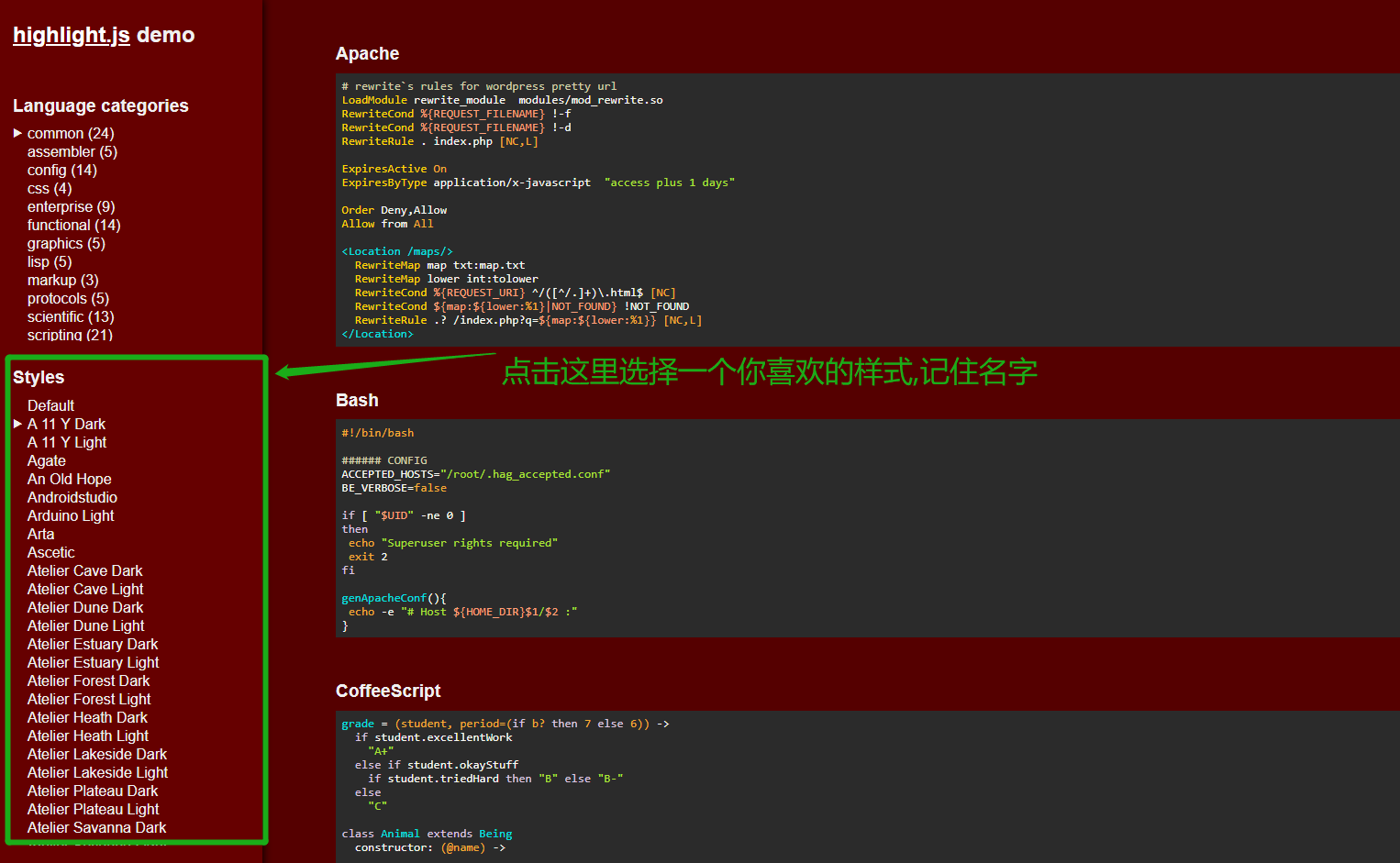 先不要着急引入样式,我们先看看highlight.js给我提供的85种样式