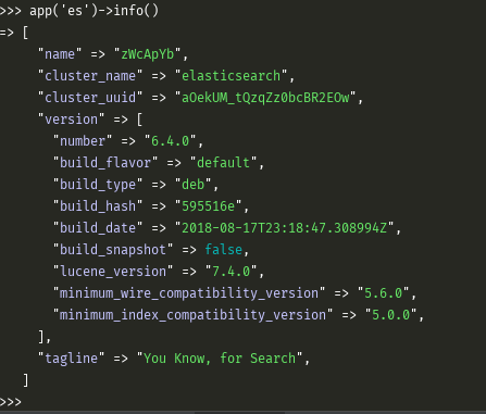 app('es')->index(['id' => $arr['id'], 'index' => 'products', 'type' => '_doc', 'body' => $arr]); |