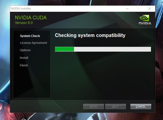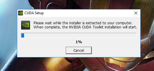 点击OK后开始出现进度条。这个环节其实是在解压CUDA