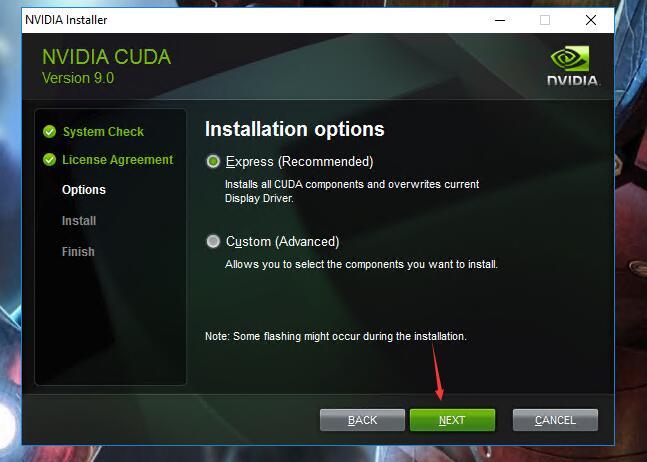 下载之后双击安装文件,稍等片刻会让你设置CUDA的缓存目录,这个默认即可。
