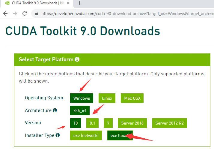 CUDA9的官方下载地址为:https://developer.nvidia.com/cuda-90-download-archive