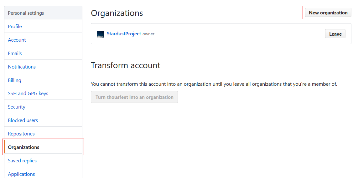 step2. 选择 “Organizations” ,点击右上角 “New organization”