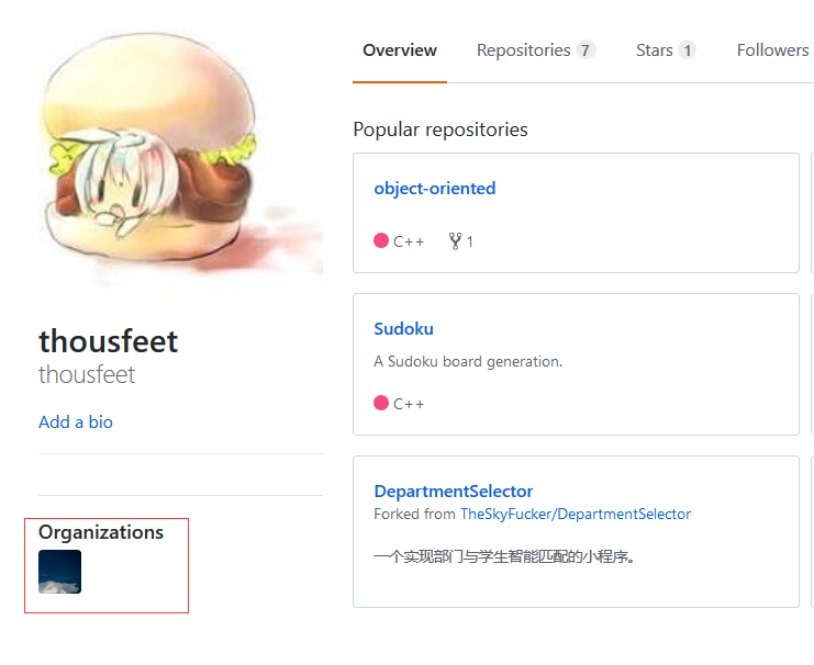 成功加入后,在 Github 个人主页的头像下方能看到自己加入的组织: