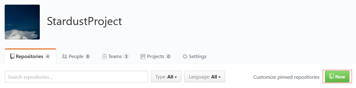 step1. 进入组织,点击 “Repositories” -> “New” 新建团队项目仓库: