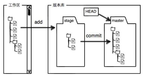 第一步是用git add把文件添加进去,实际上就是把文件修改添加到暂存区(stage);